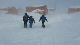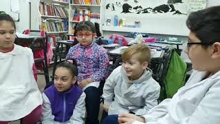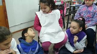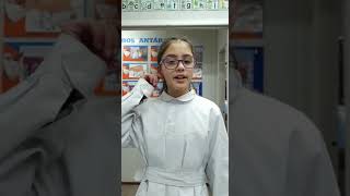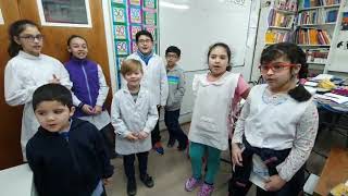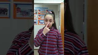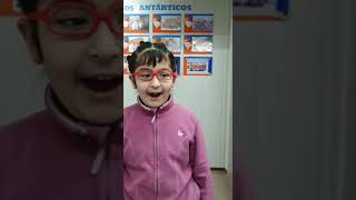 Estudiantes de la escuela 38 "Presidente Raúl Ricardo Alfonsín", Base Esperanza, Provincia de Tierra del Fuego, Antártida e Islas del Atlántico Sur, recitan y dramatizan un trabalenguas en inglés sobre los pingüinos. -